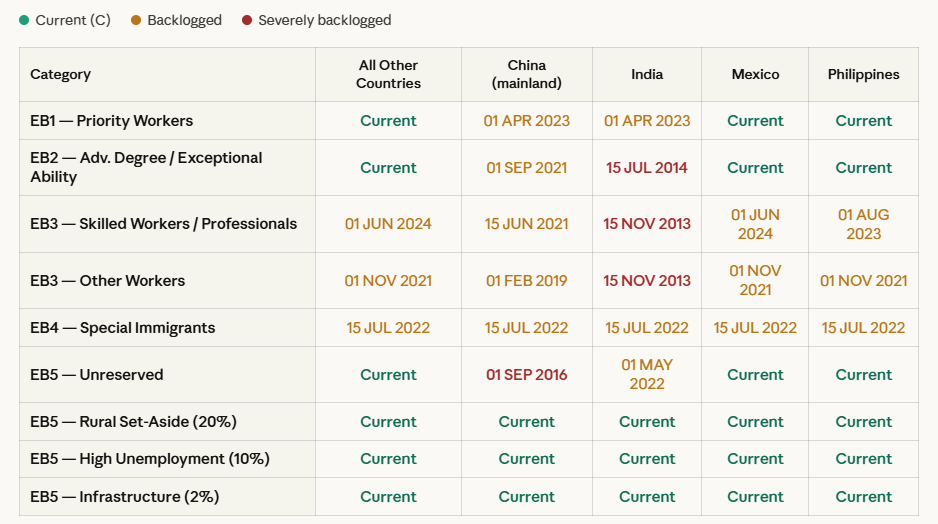 Employment-Based Priority Dates for April 2026