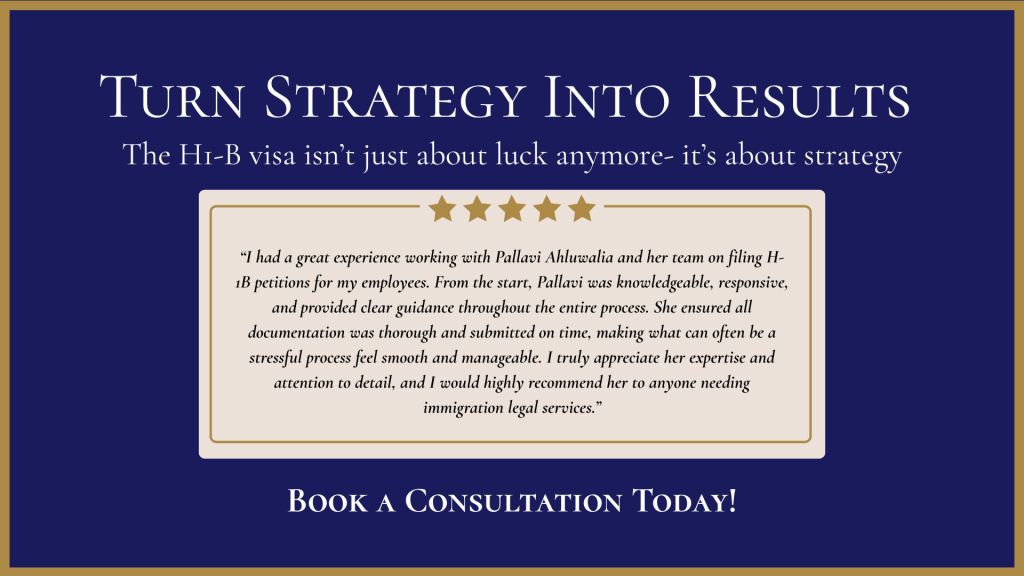 If you’ve worked on H1-B selection with us before, we highly recommend you reach out for strategy consultations soon. If you’re new to the H-1B process, now is the time to get professional guidance. The system is more complex than ever, and the stakes are higher.
