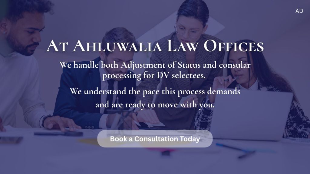 Our attorneys at Ahluwalia Law Offices, PC handle both Adjustment of Status and consular processing for DV selectees. We understand the pace this process demands and are ready to move with you.